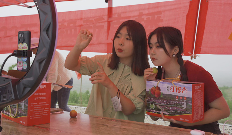 主播在線銷售紅梅杏。 海原縣文旅集團供圖