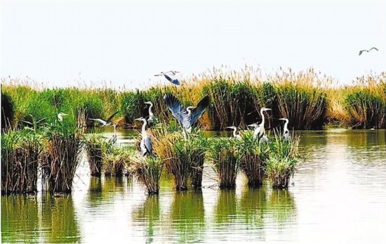 青銅峽庫區濕地自然保護區飛鳥翔集。