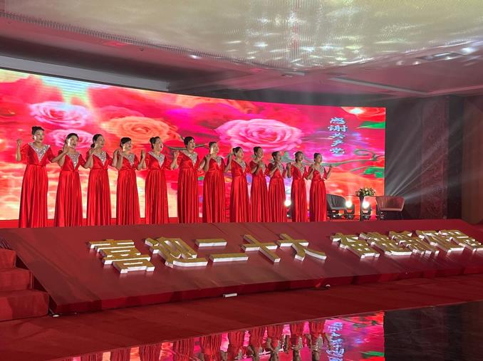金鳳區良田鎮移民婦女合唱團演繹《幸福的花兒把心唱美了》。馬靈慧攝