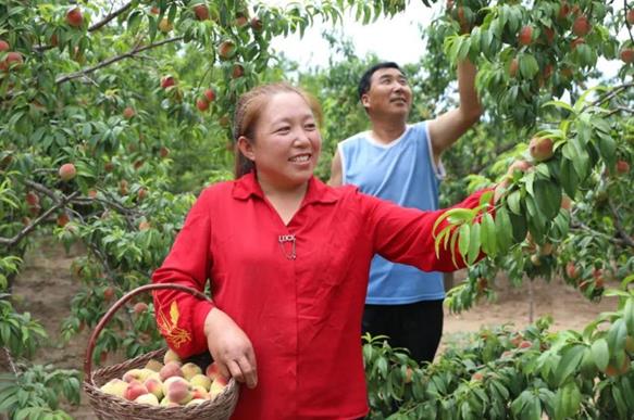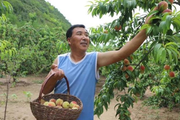 桃園主人楊梓勛采摘水蜜桃。彭陽宣傳部供圖