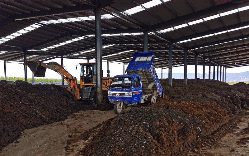 在采訪即將結束時,恰遇一輛農用三輪車駛進了“牛糞銀行”扶貧車間,工作人員通過測量長寬高,確認牛糞量后,財務人員開票,農戶將牛糞拉到了指定位置,卸掉。一旁工人開著牛糞翻拋機,將當天收購的牛糞翻拋、腐熟,等溫度達標后,再做成有機肥。