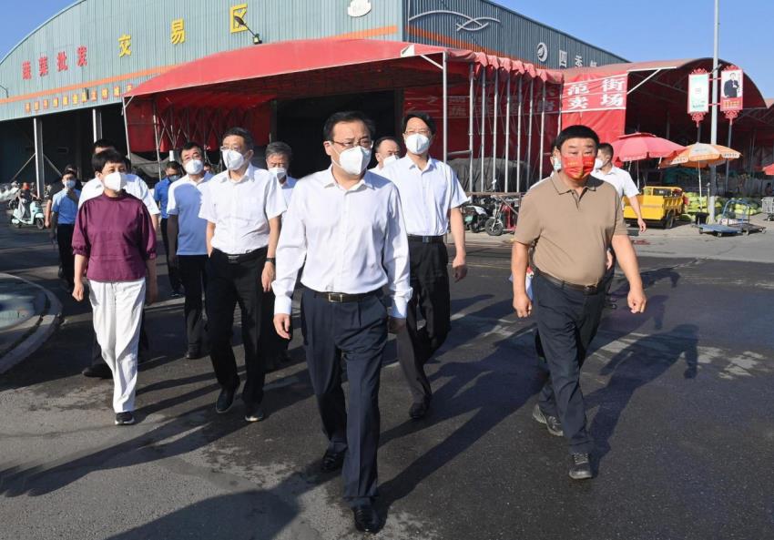 8月6日,梁言順等來到中衛市沙坡頭區四季鮮農產品批發市場,暗訪督察疫情防控工作。 圖片來源:寧夏日報