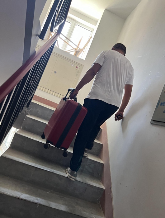 雷生勇幫文娜拎著行李上樓。受訪者供圖