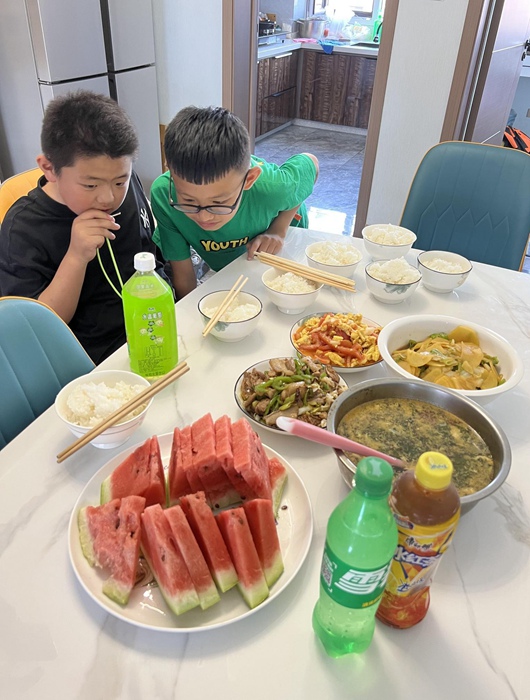 特殊時期,除了每天下樓做核酸,她們都待在家里?!昂迷诶状蟾缂?8歲的小兒子也在家,他每天陪著4個小孩子一起,自制玩具,玩桌游、打撲克,做各種游戲。我和同事負責煮飯做菜,硬是在他鄉過出了在家鄉的感覺?!?/p>