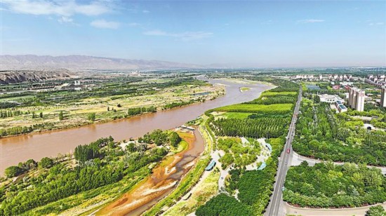 黃河寧夏中衛段。黃河、沙漠、綠洲形成了一幅塞上美景。