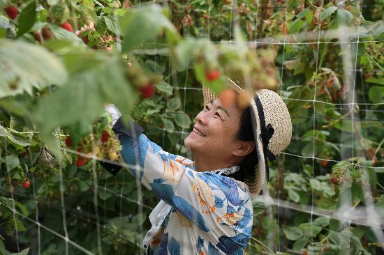 8月16日,賀蘭縣洪廣鎮欣榮村的紅樹莓種植基地工人正在忙碌著。