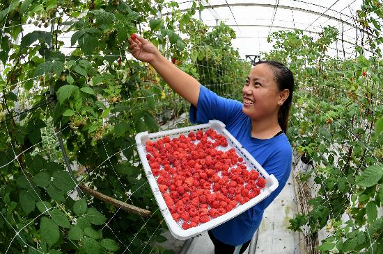 近日,賀蘭縣洪廣鎮欣榮村的紅樹莓種植基地迎來豐收季,該基地探索出了“冷庫+智能溫室+大田”鮮食紅樹莓全季節供應的生產模式,采用水肥一體化與無土栽培相結合的種植方式,通過控制紅樹莓生長過程中光照、溫度、濕度等環境因素,實現鮮食紅樹莓365天不間斷供應。這里種植出的紅樹莓,樹勢旺盛,果實飽滿,口感酸甜多汁,且高產高效,病蟲害較少,商品性高,市場前景廣闊,具有可觀的經濟效益,拓寬了當地村民的致富路。(記者 海坤 攝)