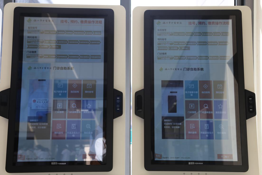 銀川市中醫醫院金鳳院區門診自助系統。馬靈慧攝。