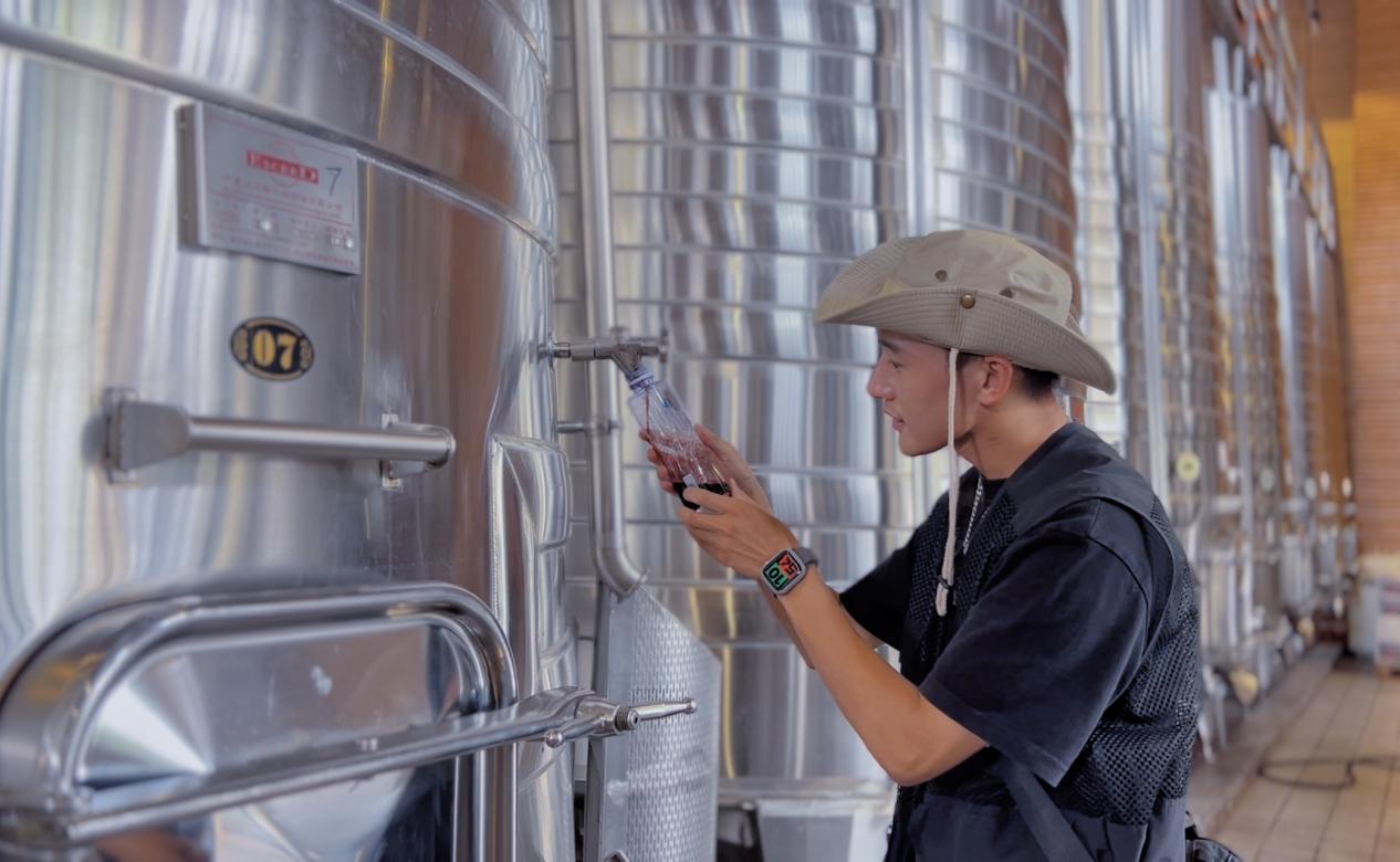 網絡達人在釀酒車間觀測葡萄酒發酵狀態。王彥峰攝