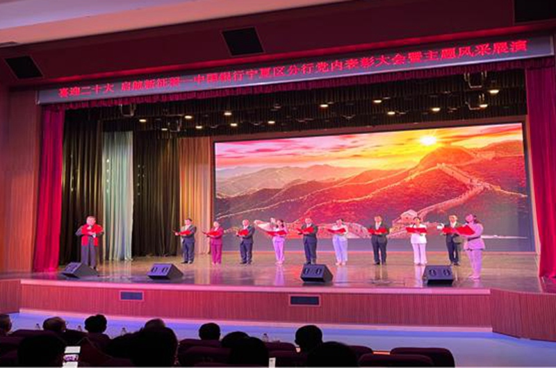 人民網銀川9月3日電(秦瑞杰、實習生崔亞芝)9月2日晚,中國銀行寧夏區分行舉辦了“喜迎二十大 啟航新征程”主題風采展演活動。本次活動為榮獲2022年紅旗黨支部的先進集體、優秀共產黨員頒發了獎狀,同時組織了2022年新發展黨員入黨宣誓儀式。