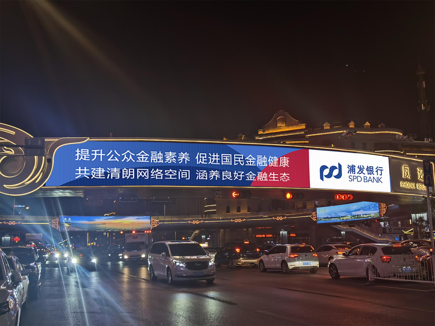 懷遠市場是聞名全國的特色夜市,附近高校林立,商販密集、學生眾多。為了幫助新市民群體和其他消費者樹立健康的金融消費理念,共同建設清朗的網絡空間,浦發銀行銀川分行以懷遠夜市鳳還橋上的電子顯示大屏為載體,滾動播放“金融知識普及月”的主題宣傳口號。此外,在興慶區民族街與解放路交叉口的工會大廈、步行街與新華路交叉口的同福酒店門口的電子顯示屏上,該行也投放了“金融知識普及月”的巨幅宣傳海報,大紅的底色、燙金的文字,吸引著過往路人駐足觀看。
