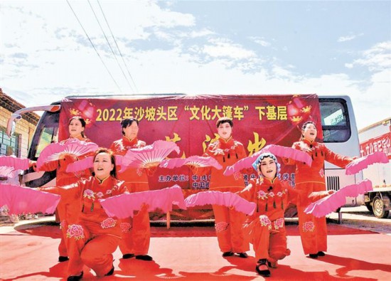 今年,沙坡頭區“文化大篷車”聚焦喜迎黨的二十大、全域旅游、移風易俗等主題,新創編《老杠頭的幸福生活》《喜迎黨的二十大》等節目,讓親歷、親為、親聞者來講真人、真事、真心話。截至目前,沙坡頭區“文化大篷車”演出200余場次,1萬多人次觀看。(記者 何耐江 攝)