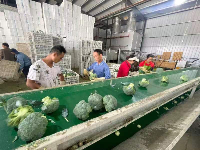 7年來,合作社西藍花單品種植從1400畝發展到如今3萬多畝,一年兩茬,采摘高峰期每天用工在600—700人,每茬西藍花發車9000多噸供應北京、上海、深圳?!爸苓吶罕娋蜆I供不應求,用工緊張時還要從外地調?!瘪R金寶說。
