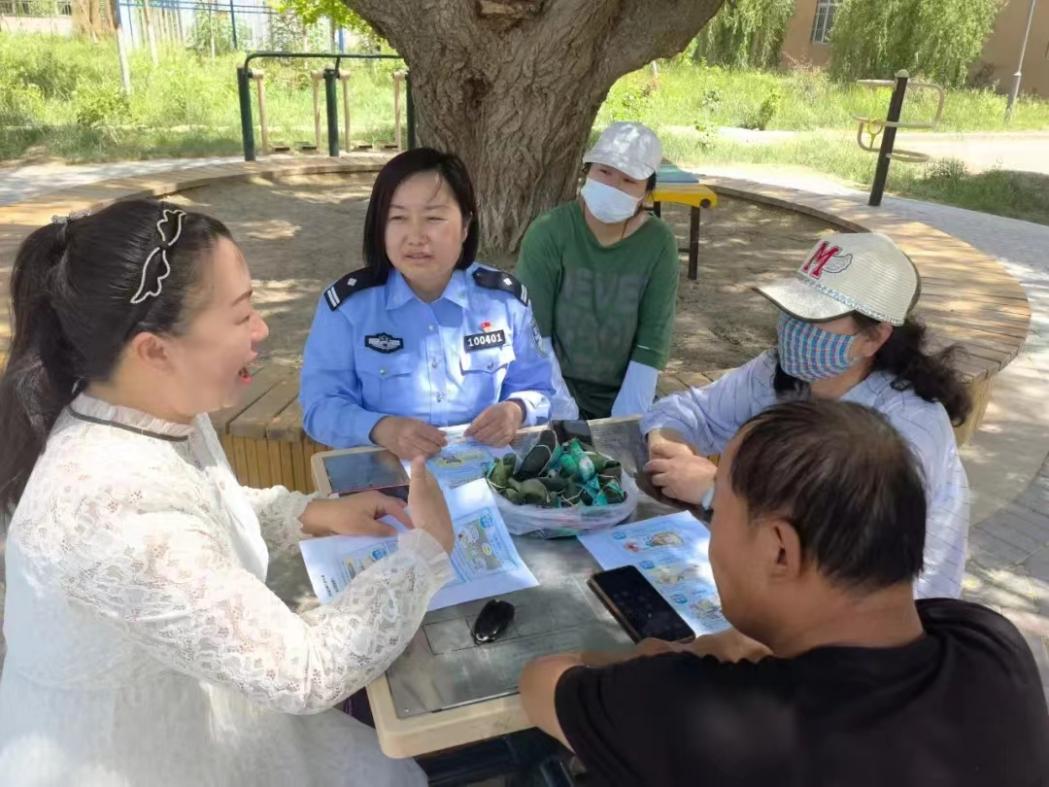 袁芳為居民講解防電信網絡詐騙知識。銀川市公安局供圖