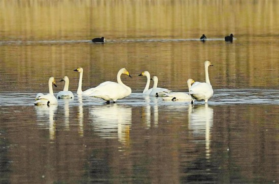 典農河上國家二級保護動物大天鵝的出現,為城市增添了一抹靚麗的風景線。