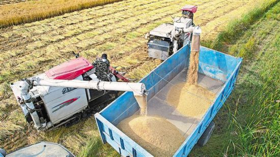 種植戶搶抓晴好天氣收割水稻,確保顆粒歸倉。