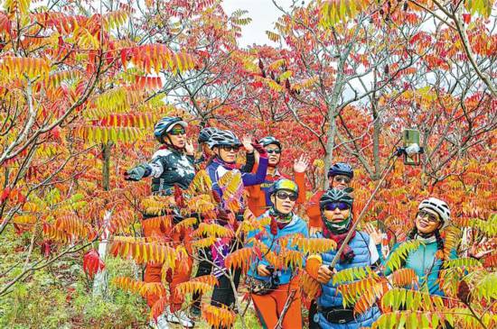 秋天的大武口北武當山漫山紅葉,景色宜人。