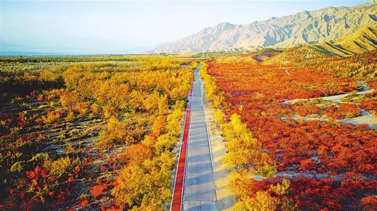 10月10日,賀蘭山大磴溝,秋風吹拂著五彩斑斕的溝壑山梁,山川靜美。