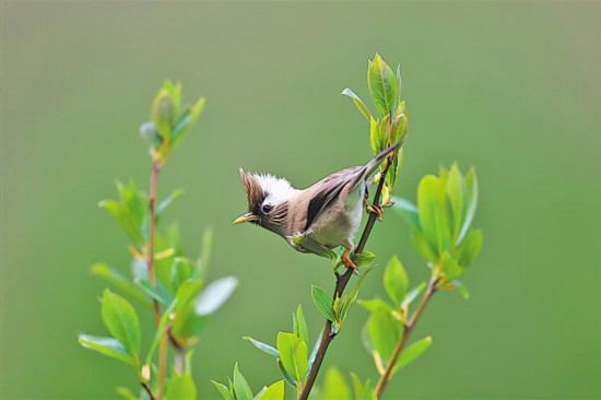 以草籽、樹種和昆蟲為食的綠翅短腳鵯、領雀嘴鵯、黃臀鵯3種典型的南方鳥種,在郭志宏拍攝的照片里頻頻現身。
