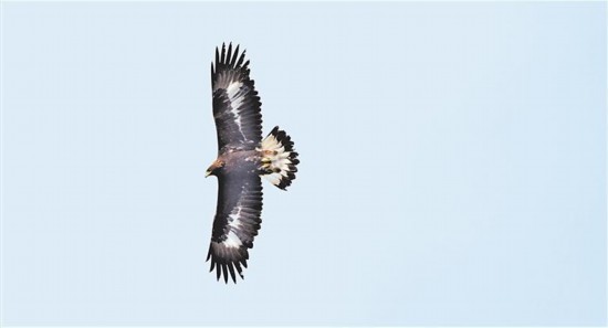 “拍完后翻看,像金雕。當時,我興奮得雙手都抖了起來?!惫竞暌庾R到,這是一次改變六盤山鳥類紀錄的機會。他懷著激動的心情,匆匆趕回單位,經過仔細對比確認,“黑影”正是國家一級保護動物金雕。