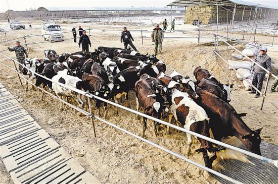 2012年10月14日,寧夏農墾從澳大利亞進口的第一批3600頭荷斯坦奶牛落戶寧夏農墾茂盛草業有限公司奶牛場。(資料圖片) 記者 王鼎 攝