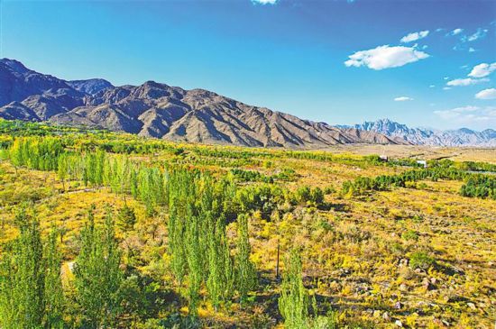 ?立冬伊始,賀蘭山下仍然綠意十足。