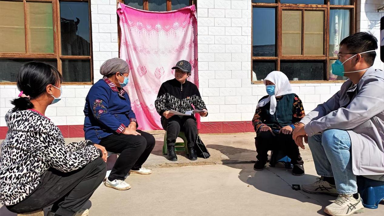 黨的二十大代表姬秀花(中)在大戰場鎮東盛村開展基層宣講。照片由本人提供