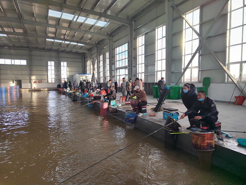 12月11號是靈武市胡家堡村冬釣棚開業的第三天,從寒風勁吹的室外進到暖意融融的冬釣棚內,偌大的垂釣館邊,幾十根釣竿依次排開,只見釣魚愛好者們手持釣竿并排齊坐,上餌、拋竿、起竿,在輕松愜意的氛圍中感受垂釣的樂趣。