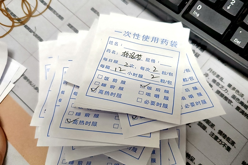 藥袋上寫著布洛芬的使用方法。石嘴山市委宣傳部供圖