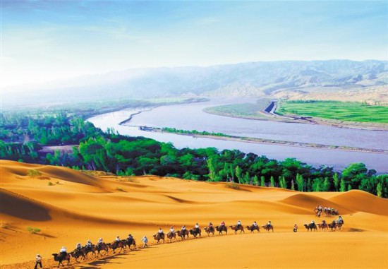 黃沙古渡國家濕地公園 黃沙古渡 “神奇寧夏”特有的塞外風光 黃沙古渡景區明清時期被列為“寧夏八景”之一,自北魏開辟寧夏境內黃河水運之后,就成為黃河水運的重要港口。在這里,黃沙與綠野、烽火臺與古長城、黃河與渡船、灘渚與芳草、集市與游客構成了一幅幅“神奇寧夏”特有的塞外風光。