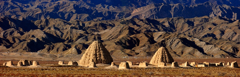 第三站:車覽五、六號陵遺址區及大型陪葬墓群。賀蘭山下古冢稠,高下有如浮水漚。西夏陵遺址區逐步對外開放了三號陵、一、二號陵、五號陵、六號陵及最壯觀陪葬墓群。其中3區陪葬墓數量最多且最為集中,國家一級文物“鎏金銅?!卑l掘出土于其中的一座陪葬墓。西夏陵雖歷經千年,依然莊嚴肅穆,在雄渾的賀蘭山下訴說著的久遠的西夏故事與歷史的滄桑變化。