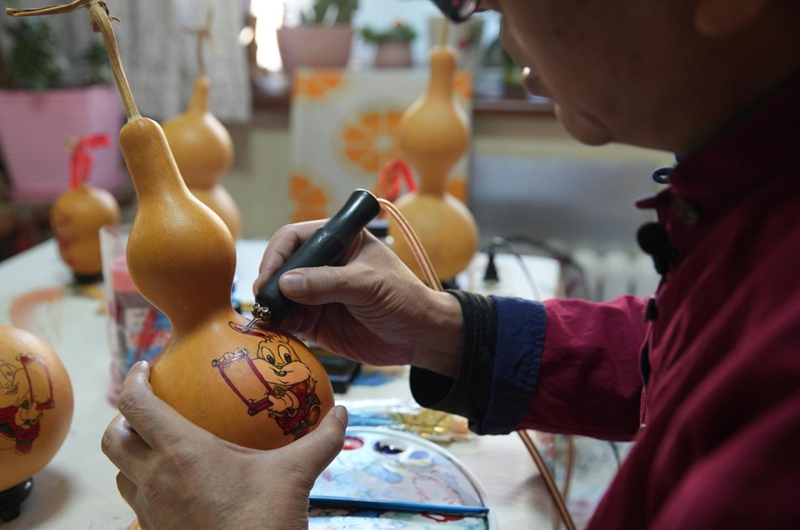 葫蘆作“紙”,烙鐵為“筆”。寧夏回族自治區級非遺項目民間烙刻畫(葫蘆烙刻畫)代表性傳承人陳湘軍,創作的“萌兔”迎春系列葫蘆烙刻畫作品,栩栩如生、賞心悅目。