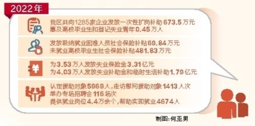 針對文化程度較低、技能低的失業人員、就業困難人員等群體,我區加大政策扶持促就業,積極落實培訓補貼政策,通過開展創業培訓提升就業技能,因人施策提供個性化幫扶。對有創業意愿、創業項目但啟動資金不足的人員,持續加強各項創業政策扶持,提供創業擔保貸款,扶持創業帶動就業。2022年,全區共組織創業培訓8773人次,培育創業實體1.48萬家,創業帶動就業5.85萬人次;為1265名城鎮登記失業人員發放創業擔保貸款2.09億元,為154名就業困難人員發放創業擔保貸款2452萬元。