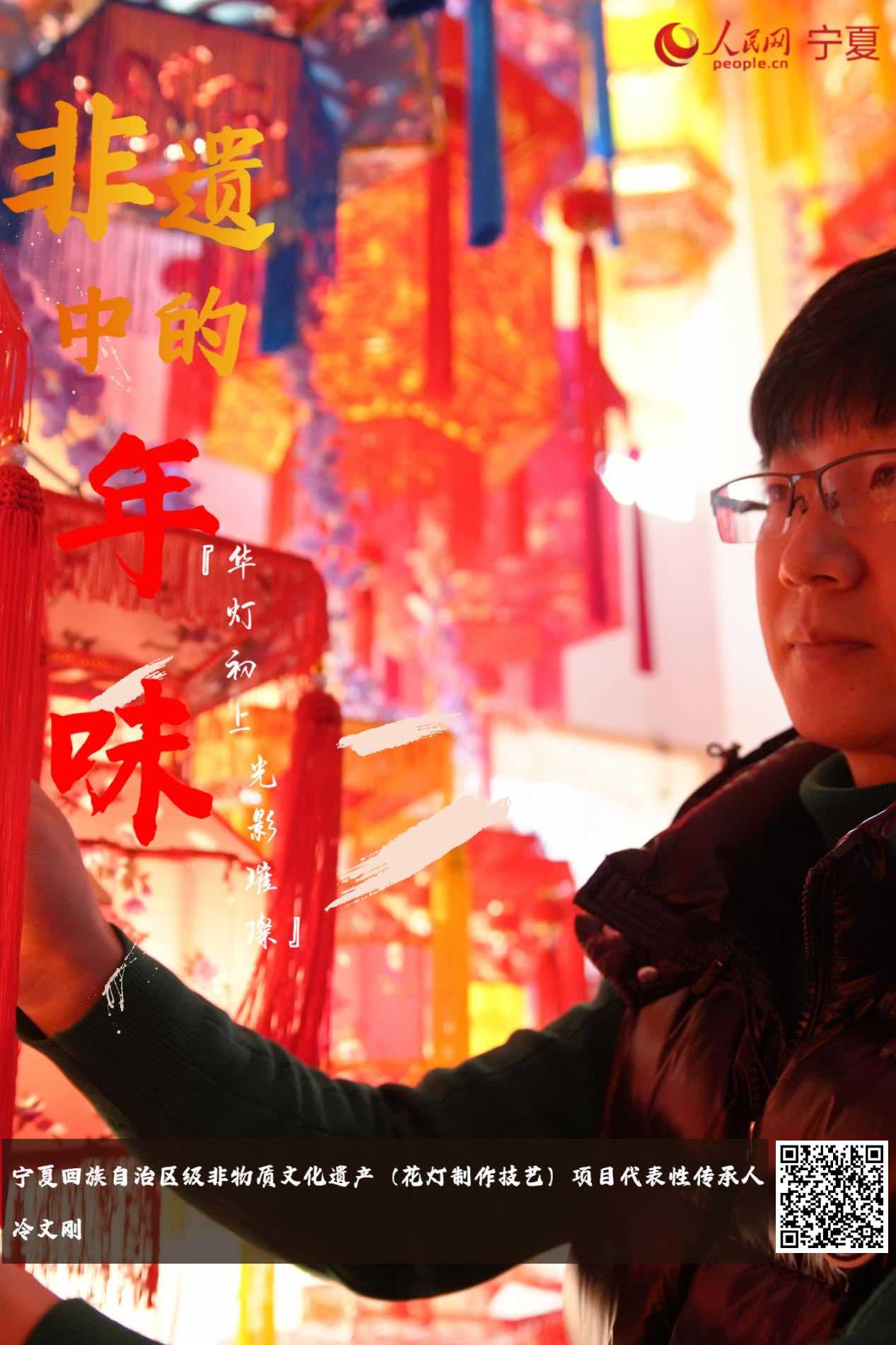 寧夏回族自治區級非物質文化遺產(花燈制作技藝)項目代表性傳承人冷文剛,是寧夏冷氏走馬燈第三代傳承人。走進他的工作室,四處掛著造型多樣、色彩鮮艷的花燈……冷文剛的花燈制作技藝創作主要以走馬燈為主。因其內燈內平放有葉輪,下有燃燭或燈,故熱氣上升帶動葉輪旋轉時,燈內黏貼有人或馬的剪紙,其影子便會投射到燈籠紙罩上,形成“走馬、魚游”的有趣視覺效果,故稱之為“走馬燈”。