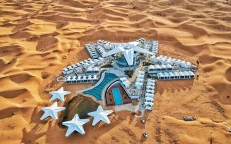 一顆超大的五角星,坐落在騰格里沙漠中,是4.3萬平方公里沙漠中最閃耀的一顆星。