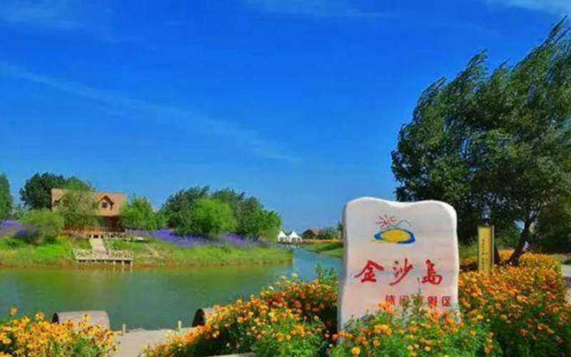 獨具特色的木質別墅、生態餐廳、休閑會所等人造景觀巧妙鑲嵌在“金沙島”上,金黃柔軟的沙灘,潔凈清澈的湖水,蜿蜒迂回的棧道,連片如氈的綠茵和天然形成的沙漠、濕地、湖泊、漁塘等多種景觀組成了一副塞上江南風光旖旎、風景迷人的美麗畫卷。