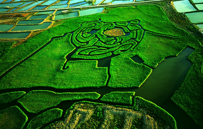 第一站:蘆葦迷宮。蘆葦迷宮是由著名的人類生態修復學教授朱仁民(被聯合國官員譽為“中國達·芬奇”、“中國生態修復設計之父”)主持設計。其創作靈感來自于中國傳統文化中的八卦造型。迷宮水道總長十余公里,南北最長者1200米,東西最寬者800米,整個迷宮蜿蜒曲折、幽深莫測。蘆葦迷宮是鳥兒的樂園,棲居的鳥類以蒼鷺居多。