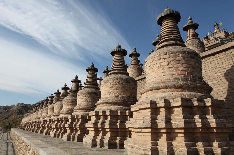 第五站:一百零八塔。游至108塔,上岸探尋千年古塔群的神秘傳說。1988年被國務院公布為第三批全國重點文物保護單位。依山勢自上而下按奇數排列為12層,塔群總數為108,總體平面呈等腰三角形,是中國現存規模最大且排列最整齊的大型古塔群之一,其歷史藝術科學價值為游人所矚目??傻琼敻惺苜R蘭山、牛首山與黃河母親的壯美遼闊,坐在涼亭的石桌旁談笑觀塔,閉目間,自是有了一番悠然自在和閑暇愜意。