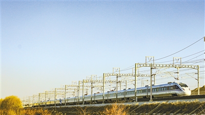 暖陽穿透薄霧,“和諧號”動車锃亮的車頭泛著光芒,徐徐駛出銀川站。