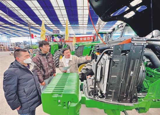 2月6日,在銀川西北農資城,農戶在選購農用拖拉機。眼下正值春耕備耕關鍵時期,記者走訪一些農資市場發現,農藥、肥料、種子、農具等各類農資產品一應俱全,農戶在各類農資門店精心選購農資,為春耕生產做準備。