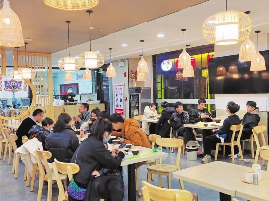 “您的餐好了,請慢用?!薄澳鷰孜??里面請……”2月5日晚,固原市原州區榮華錦匯旅游休閑街區熱鬧非凡,服務人員的吆喝聲此起彼伏。西竹拌面榮華錦園店、紅子鴿砂鍋面、鴻亮食府等餐館顧客絡繹不絕,生意十分火爆。近期,我區餐飲行業回暖復蘇,餐廳滿座、排隊等位的熱鬧場景重現,飄香美食帶動著久違的“煙火氣”加速歸來。