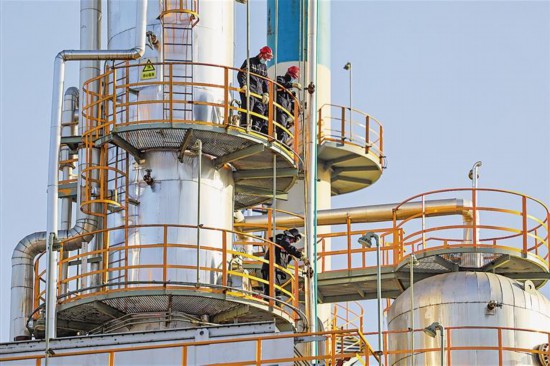 寧夏百川新材料有限公司,工作人員在檢修維護設備,保障生產秩序穩定。
