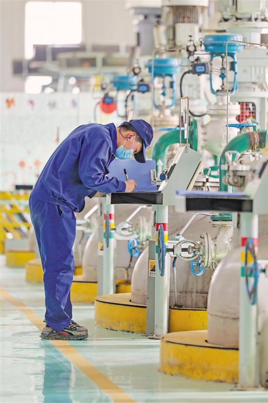 寧夏金維制藥股份有限公司,工作人員在生產車間巡檢,確保生產有序進行。