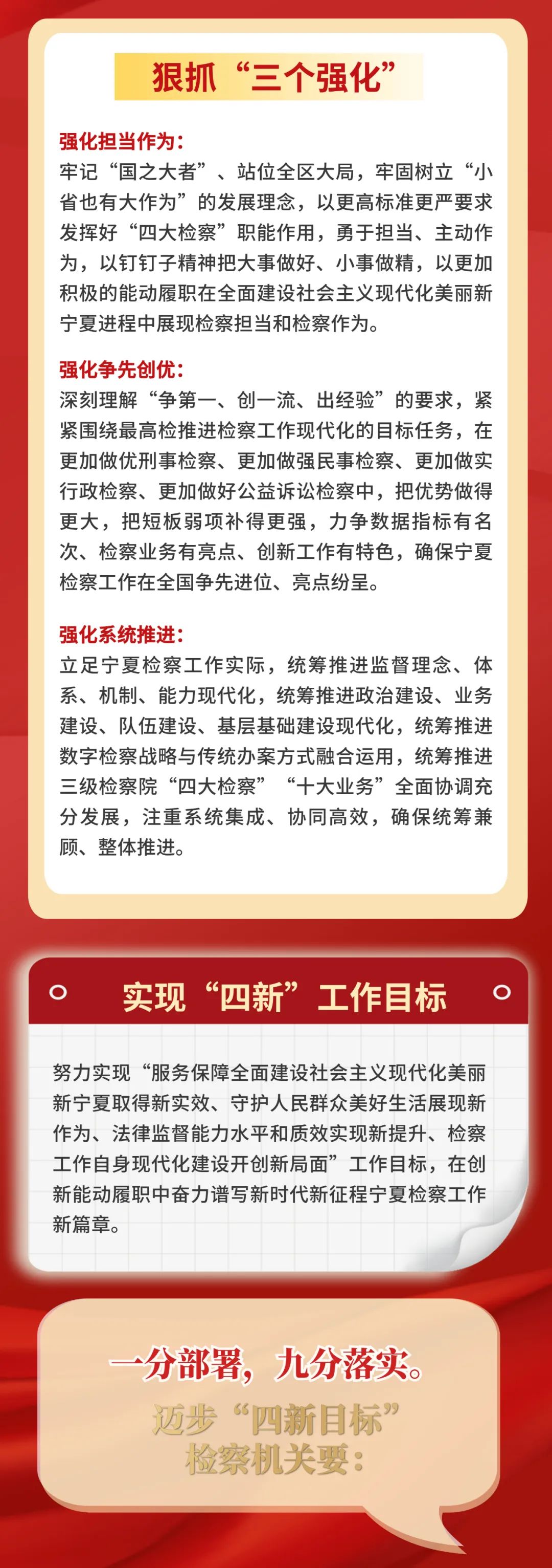 2023年是全面學習貫徹黨的二十大精神開局之年,是貫徹落實自治區第十三次黨代會部署的發力之年。2月10日,全區檢察長會議在銀川召開,對當前一個時期的檢察工作進行部署,寧夏檢察工作怎么干?一起來了解!