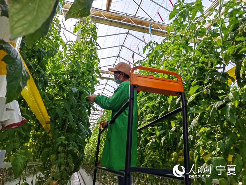 人民網銀川2月16日電(李甜甜)走進銀川市永寧縣閩寧鎮凱盛(銀川)現代智慧農業產業園內,工人們正在智慧溫室內采摘番茄。據介紹,這里每天采摘量可以達到8噸多,采收周期為12個月。采摘的番茄通過線上線下兩個渠道銷售,預計年收入3000萬元。