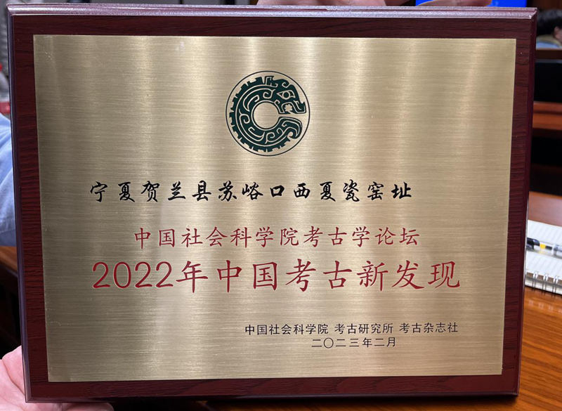 “2022年中國考古新發現”牌匾。寧夏文化和旅游廳供圖