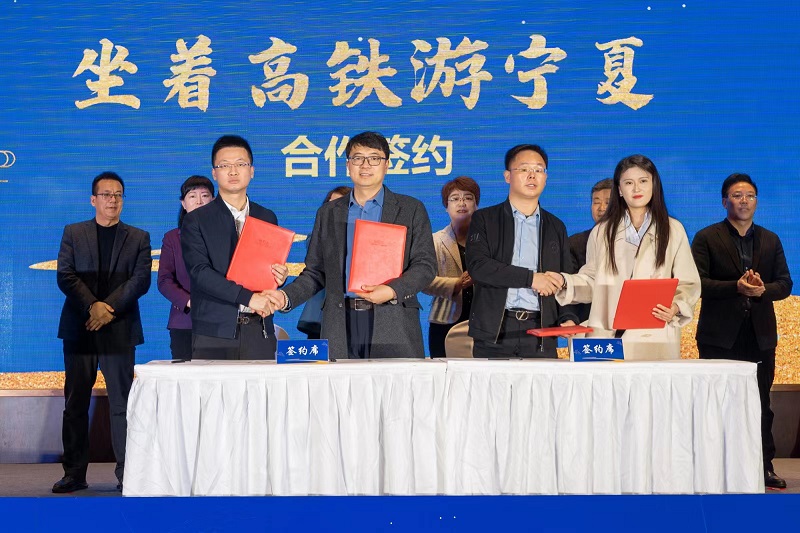 “坐著高鐵游寧夏”西安推介活動現場簽約。寧夏文旅廳供圖