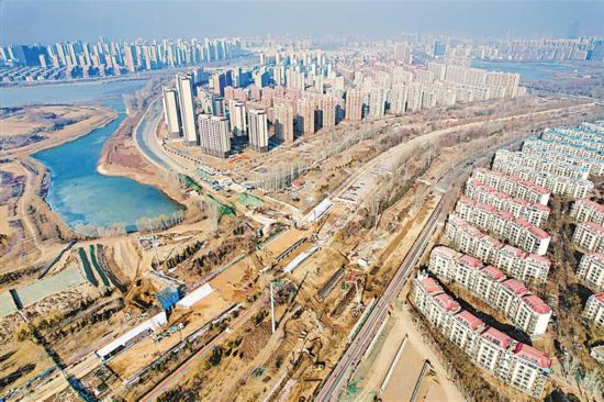 昨天,銀川市交通疏堵“6+N”工程重點項目——金鳳五路項目跨唐徠渠橋基礎工程已進入收尾階段,建設者們正在配合大型工程機械一同加快推進工程進度。目前,該項目正源街至塔渠街路段已投入使用,預計4月底項目全部完工。屆時,這條曾經雜草叢生的土路將成為銀川城南的主要道路。 記者 馬楠 王洋 攝