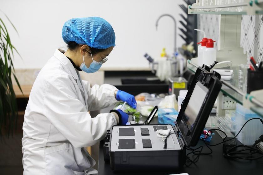 快速檢驗室工作人員對當天食材進行抽檢。張海峰攝