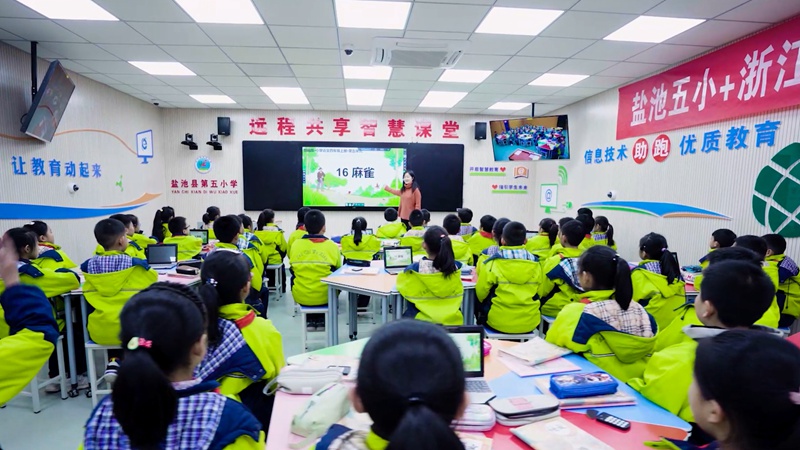 鹽池縣第五小學遠程共享智慧課堂。鹽池縣委宣傳部提供